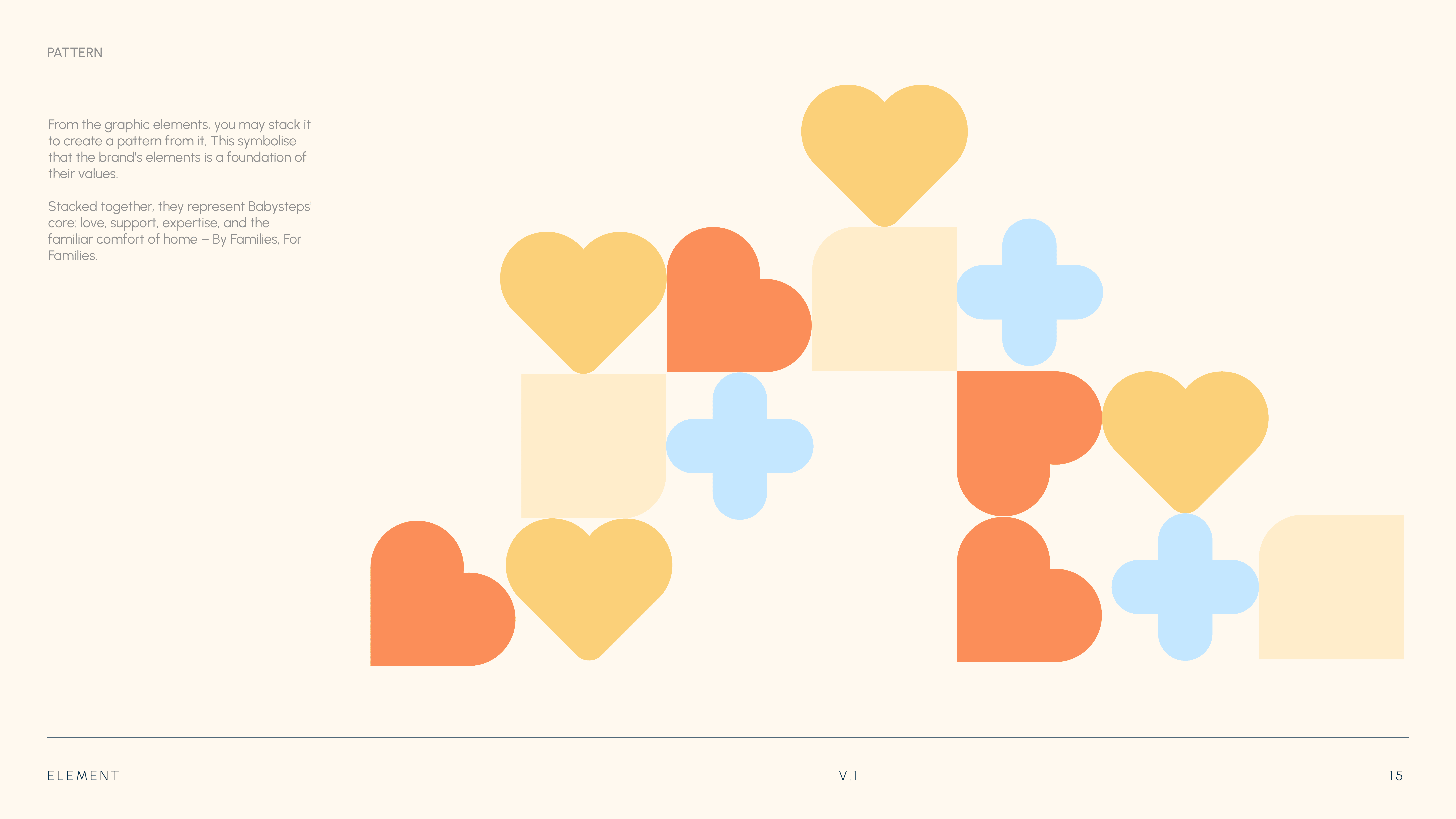 To bring out the playful side of the brand, I took the shapes from the logo and turned them into stackable “toy” patterns across the visual identity. Each shape has its own meaning, so the patterns aren’t just for decoration; they connect back to the brand and make it feel fun and memorable.
